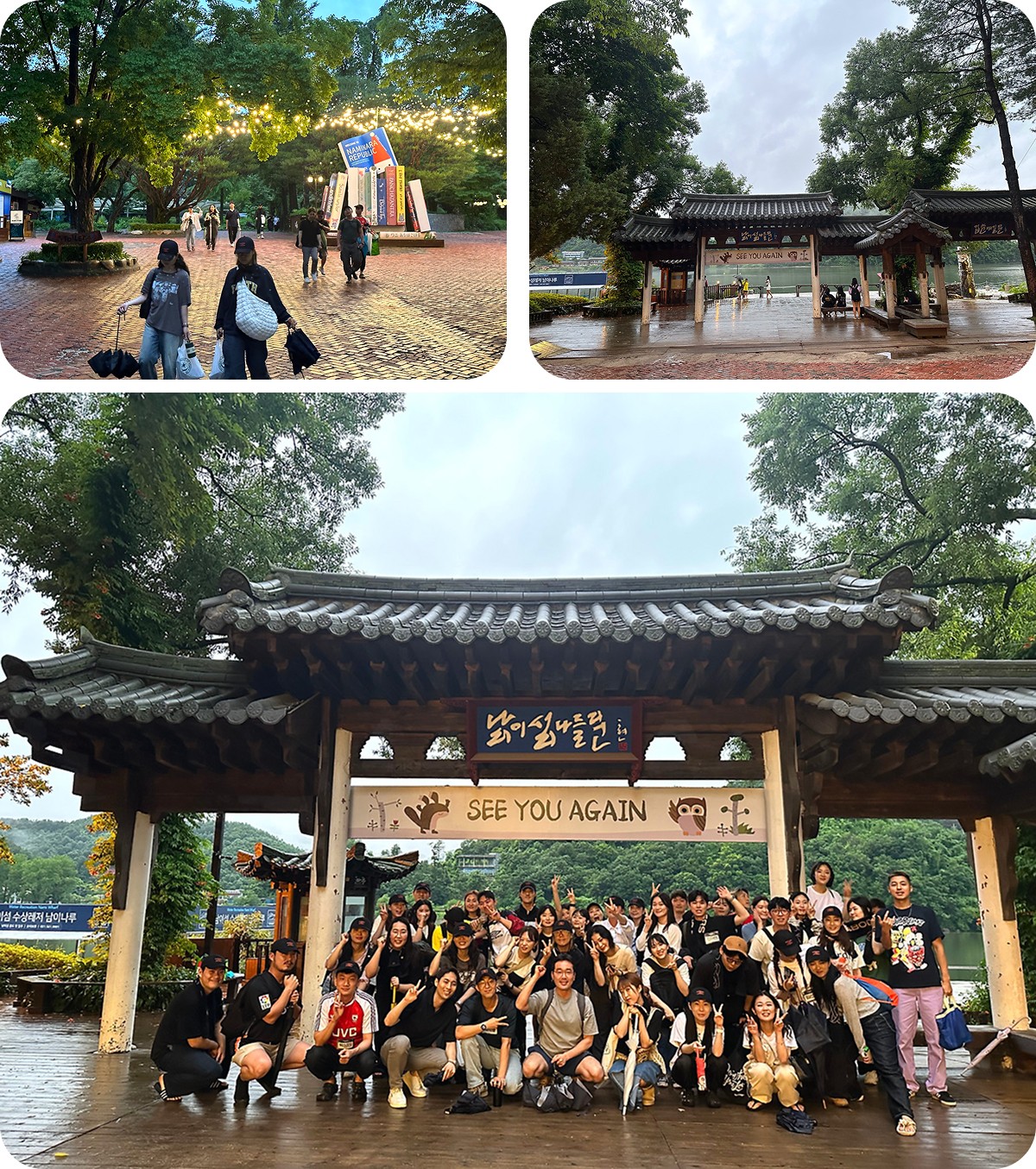 식사가 끝난 후에는 남은 보물을 찾으러 돌아다니거나, 개별 휴식 시간을 갖거나, 자리에 끝까지 남아 계시는 분들도 계셨어요. 그렇게 각자 원하는 방식대로 시간을 보내다 배를 타기 위해 선착장에 모였답니다. 집에 갈 때가 되니 비가 그쳐 팀끼리 여유롭게 사진을 찍기도 하고, 대화도 나누며 시간을 보냈는데요. 본래 남이섬에 처음 입장했을 때 찍기로 했던 단체사진도 찍을 수 있었어요. 비가 너무 많이 와서 바로 식당으로 이동했는데 아쉬움을 달랠 수 있었죠. 그렇게 우리의 첫 워크숍이 끝났습니다! 날씨가 좋지 않아 걱정했지만 기대 이상으로 재밌고 알찬 워크숍이었어요.