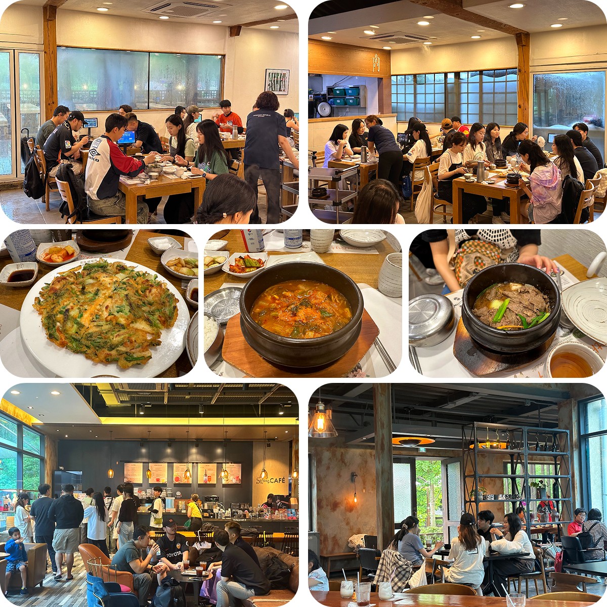 도착 후 남이섬 내에 있는 식당으로 바로 이동했습니다. 열심히 놀고 즐기려면 에너지가 필요하겠죠? 사전조사를 통해 받아둔 메뉴에 (비가 와서 더 맛있게 느껴진) 파전, 그리고 일부 테이블에서는 막걸리를 즐겼어요. 비가 와서 그런지 파전이 정말, 정말 맛있었답니다... 식사가 끝나신 분들은 부스터스의 타운홀 미팅인 '부스팅 데이' 순서를 진행하기 전 주어진 자유시간을 즐기러 카페로 이동했어요. 사전에 남이섬 내 카페에서 사용할 수 있는 카페 쿠폰을 크루 개개인에게 지급했답니다. 어떤 분들은 커피를 마시기도 하고, 또 동료들과 쿠폰을 함께 모아 빙수를 시켜 드시기도 했어요.