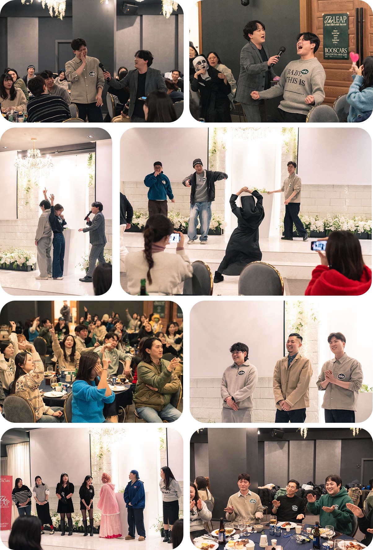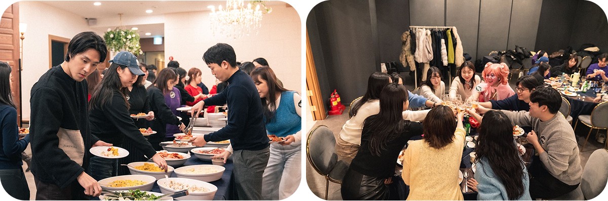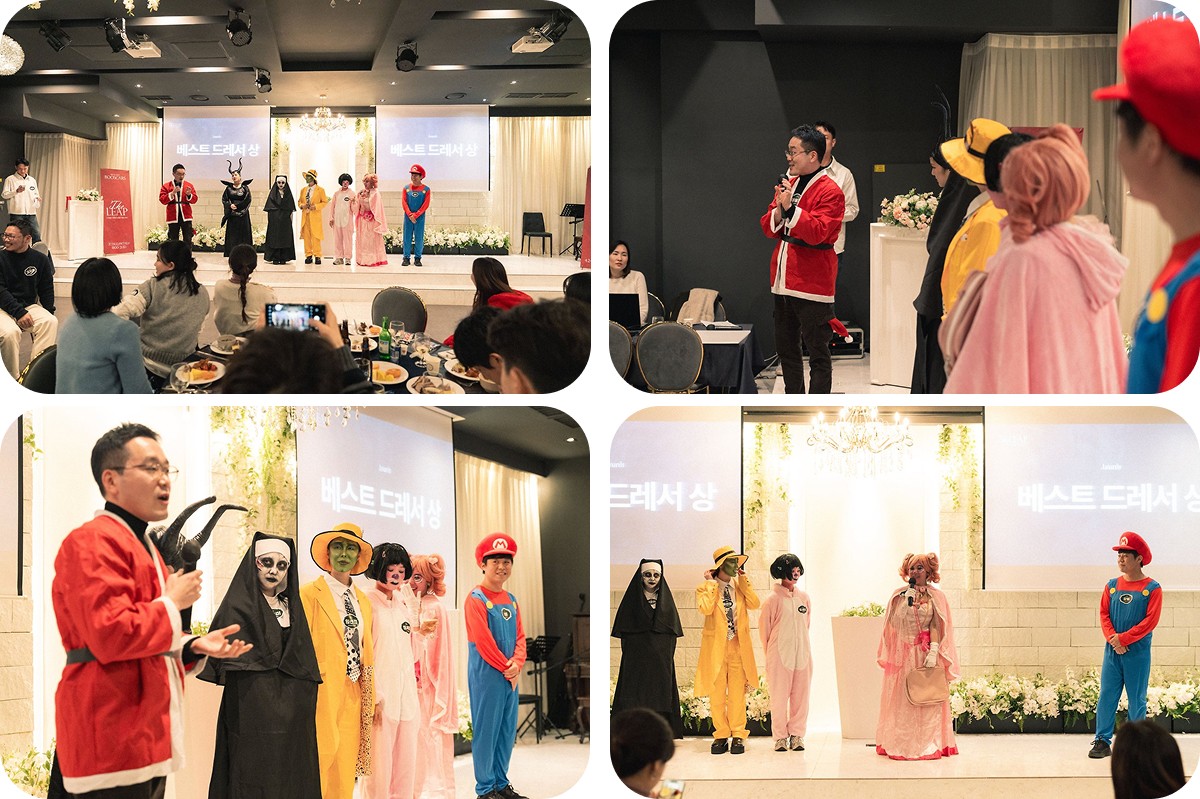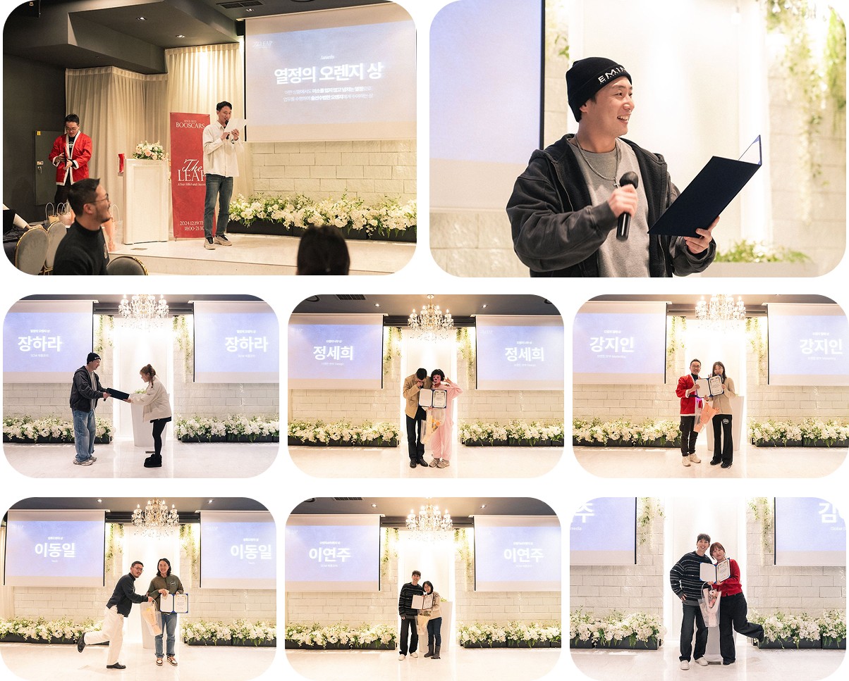 한 해의 마지막을 장식하는 송년회 날, 모두가 한 자리에 모여 특별한 시간을 보냈습니다. 그동안은 앞만 보며 달리기 바빴다면, 이날 하루만큼은 온전히 즐길 수 있도록 열심히 준비했습니다. 눈부신 성과를 이룬 2024년이었기에 이번 송년회의 부제는 'The Leap(도약)'이었습니다.