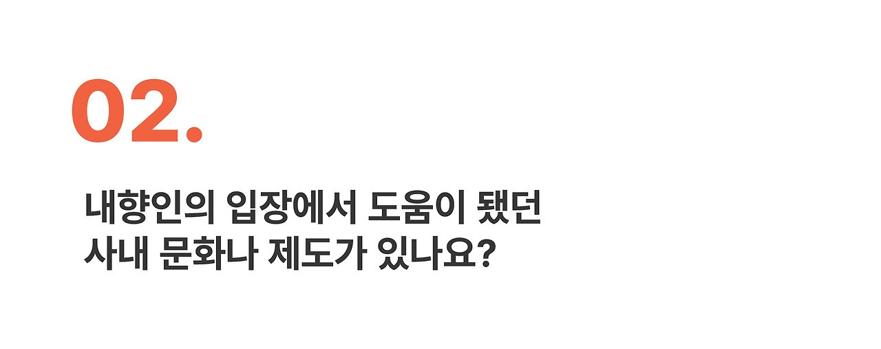 "온보딩이 많은 도움이 되었어요. 입사하자마자 비슷한 시기에 들어오신 분들을 계속 만나다 보니 자연스럽게 친해질 수 있었고 저보다 외향적인 분들이 먼저 밥도 먹자고 다가와주셨습니다."