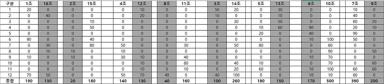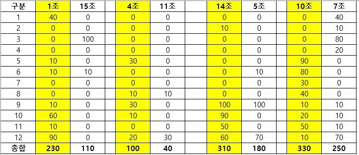 16개 조 간의 치열한 경쟁이 시작됐습니다. 모두에게 공평하도록 연습은 대회 시작 바로 직전 인당 3번의 기회가 주어졌는데요. 연습에서는 좋은 성적을 보여줬던 분이 본 게임에서 점수를 못 내기도 하고, 저조했던 분들이 또 고득점을 하기도 했어요. 물론 꾸준히 잘하시는 분들도 있었죠.