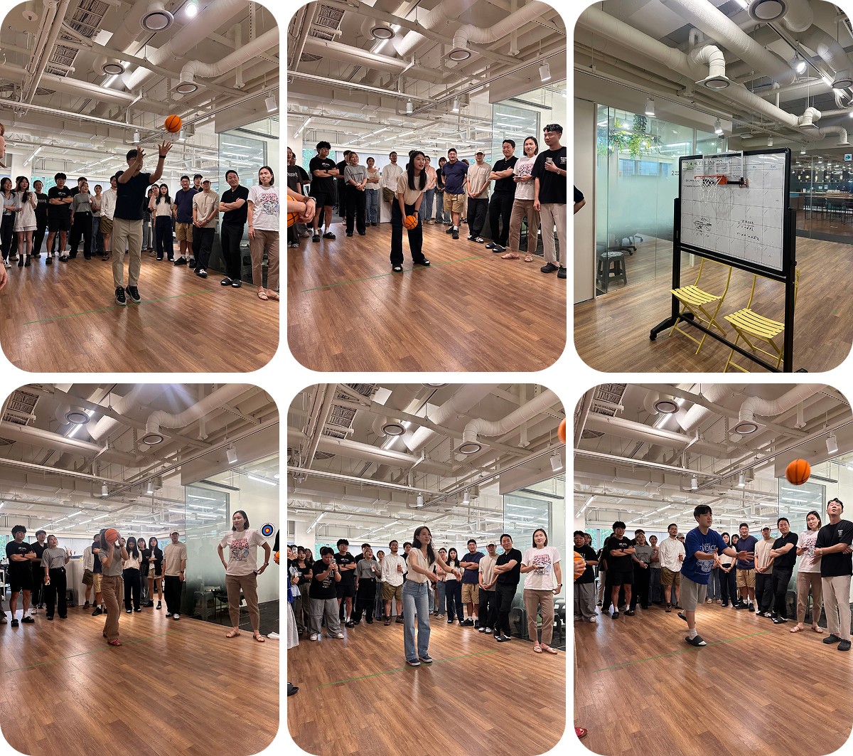 농구는 양궁보다는 많았지만, 그럼에도 점수를 낸 팀이 4팀밖에 되지 않았습니다. 각기 다른 방법으로 공을 던지며 점수를 냈습니다. Retail팀의 병열님과 예지님이 1점씩 내며 총 2점으로 농구 종목의 1 등을 차지했습니다. 그 외의 3팀은 모두 1점씩 획득하며 공동 2등을 차지했어요. (3등은 없었습니다)