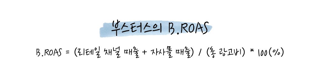 부스터스에서는 B.ROAS 를 보기 쉽게 다음처럼 정의하고 관리하고 있습니다.