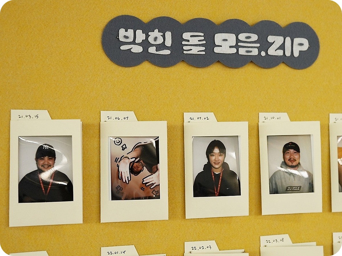 창석: 개인적으로는 CB(Corporate Branding)팀이 생기고 회사 분위기가 많이 변한 것 같아요. 덕분에 회사 분위기가 좋아지고 우리가 즐길 수 있는 것들이 많아졌어요. 또 간식이나 트렌드캐칭 데이 등 누릴 수 있는 복지도 꾸준히 생기고 있고요.